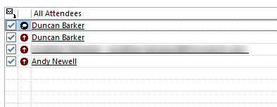 - If you invite yourself and others to the meeting in Ezekia, all the invitees will be invited, and you will also be named as the organiser in Outlook (see below, Duncan Barker being the organiser)