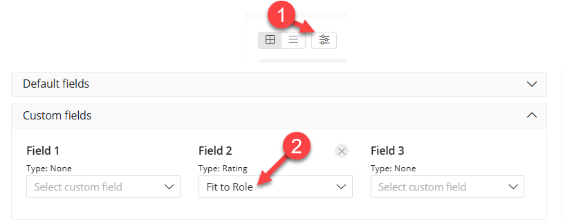 You can adjust the card layout used for the candidate list (similar to custom cards in other parts of Ezekia), using these icons: