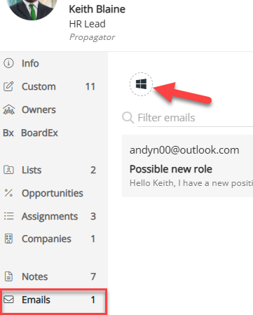 You cannot synchronise emails for all people records in Ezekia, but you can synchronise everyone on a company or project record in one operation. If you click the icon shown below, any candidates or contacts that are on the company or project, or are later added to it, will be synchronised with your Outlook account.