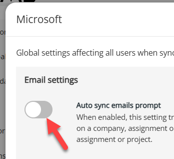 Administrators can choose to display a warning to advise users that they have not yet clicked the Autosync icon on records they are viewing. This can be done in Settings, Integration, Microsoft, by turning on this switch: