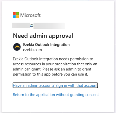 Ask your Outlook/Exchange administrator to login to Microsoft Azure, navigate to the Enterprise Applications section and find our application "Ezekia Outlook Integration". Within the app, there should be a permissions section where they can grant admin consent to the permissions our app uses.