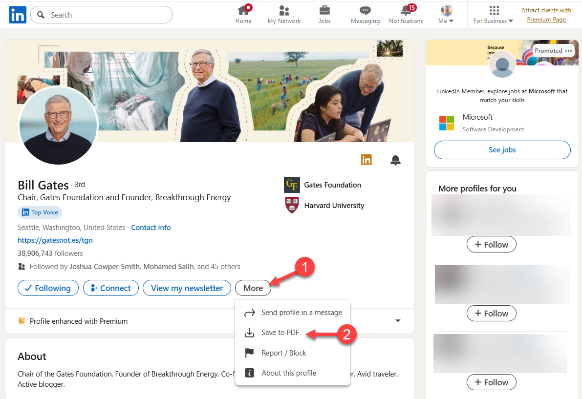 You can easily save a candidate’s LinkedIn profile as a PDF and then upload it into Ezekia as their CV. This can be done for existing candidates or when creating a new person.