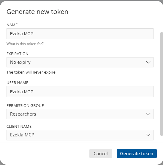 To connect Ezekia to an external AI tool, you’ll need to generate an API token.
